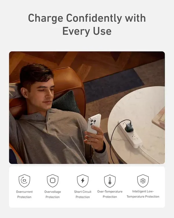شارژر Anker Zolo GaN 30W از پروتکل‌های شارژ سریع Power Delivery (PD) پشتیبانی می‌کند؛ استانداردی جهانی که امکان شارژ سریع، ایمن و تطبیق‌پذیر را برای طیف وسیعی از دستگاه‌ها فراهم می‌سازد. این سازگاری گسترده باعث می‌شود بدون نگرانی از ناسازگاری، بتوانید گوشی‌های آیفون، سامسونگ، شیائومی، هواوی، تبلت‌ها و سایر گجت‌های USB-C را شارژ کنید. هوشمندی در تشخیص دستگاه متصل، تنظیم ولتاژ مناسب و جلوگیری از نوسانات ناگهانی، این شارژر را به انتخابی قابل اعتماد برای کاربران حرفه‌ای تبدیل کرده است.